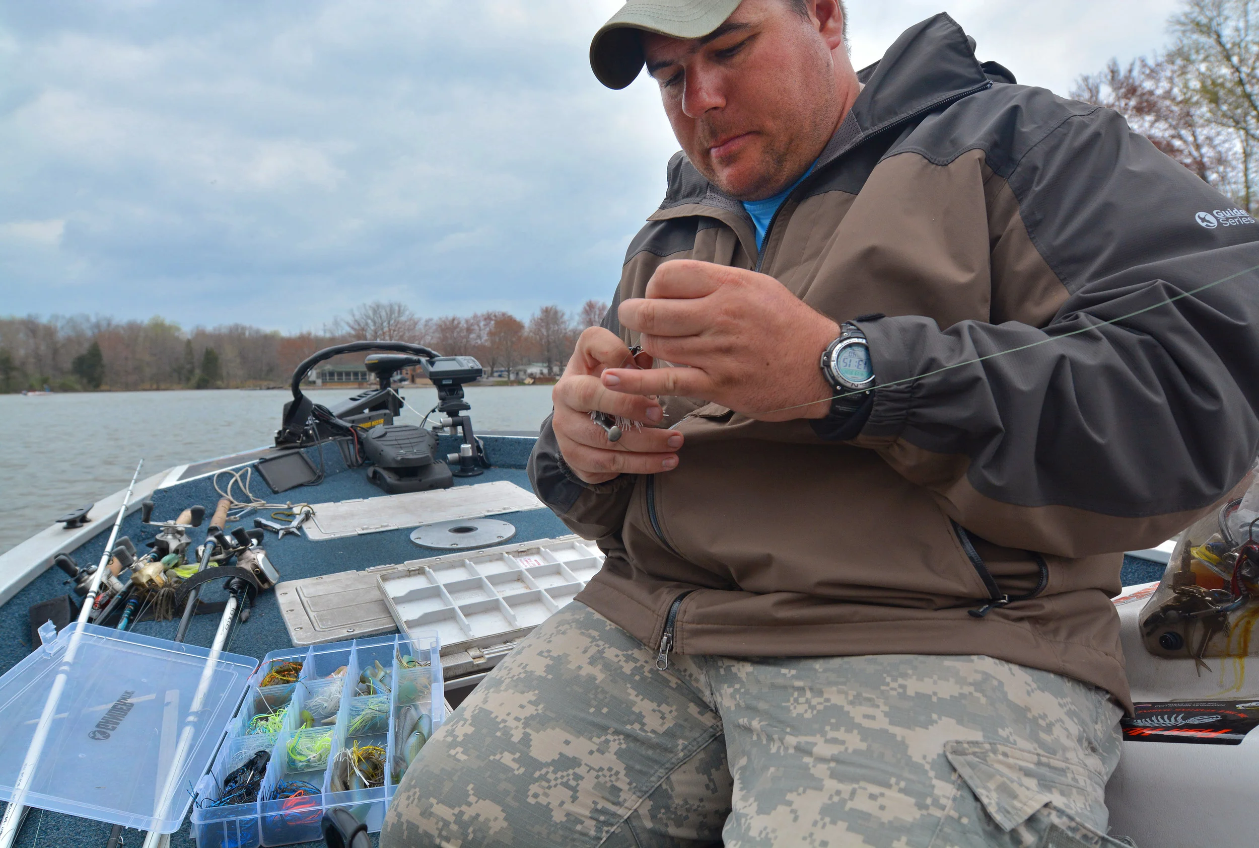 Aaron Connor, of Murphysboro, Ill., fishes during the fifth-annual Saluki Bassers Veterans Appreciation Fishing Tournament on April 13 at Lake of Egypt in Marion, Ill.