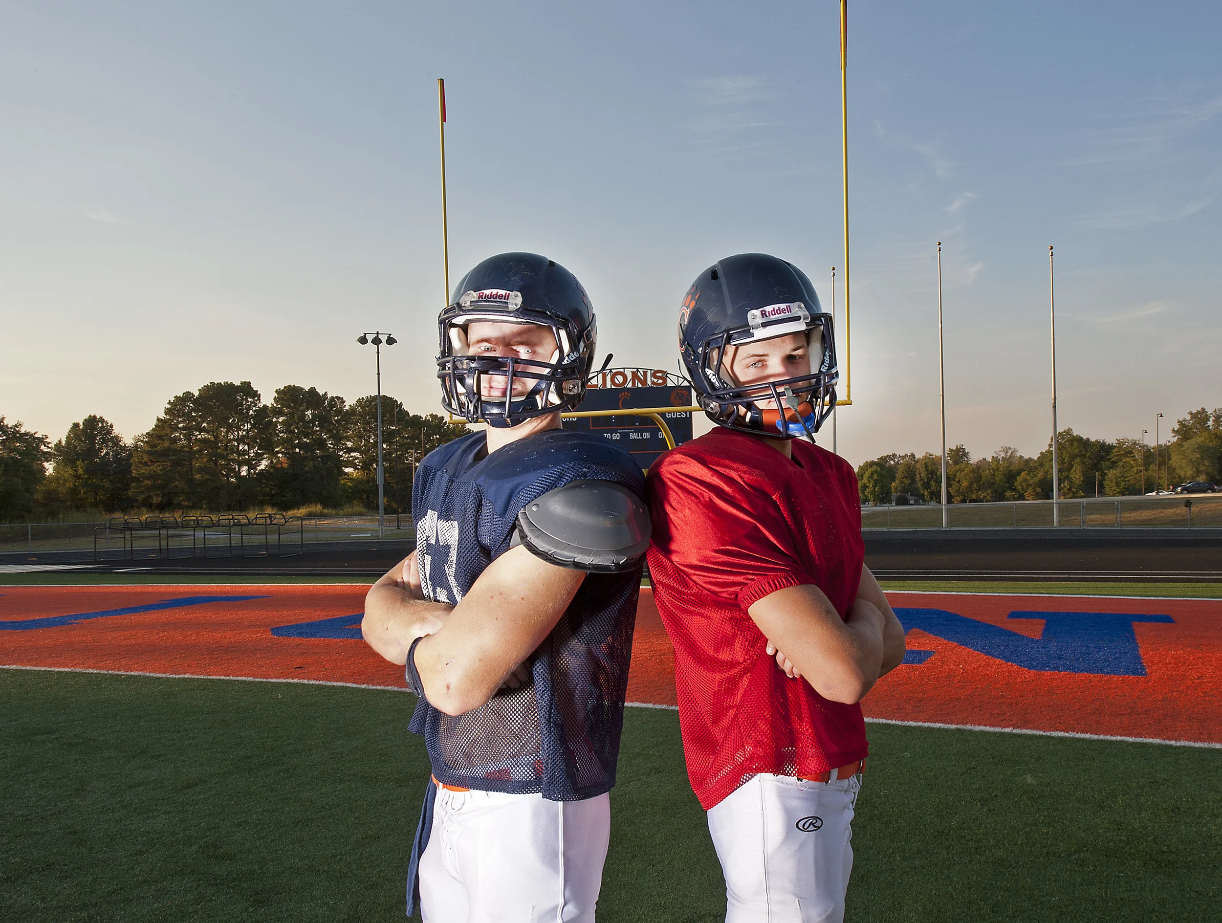 Running back Brayden Bisaillon, left, and quarterback Blake Hicks have replaced former running back Phillip Frangello and quarterback Michael Aschemann on the Carterville Lions this season, jumping out to a 5-0 start. Bisaillon and Hicks believe they can bring Carterville its first state championship since 1996.
