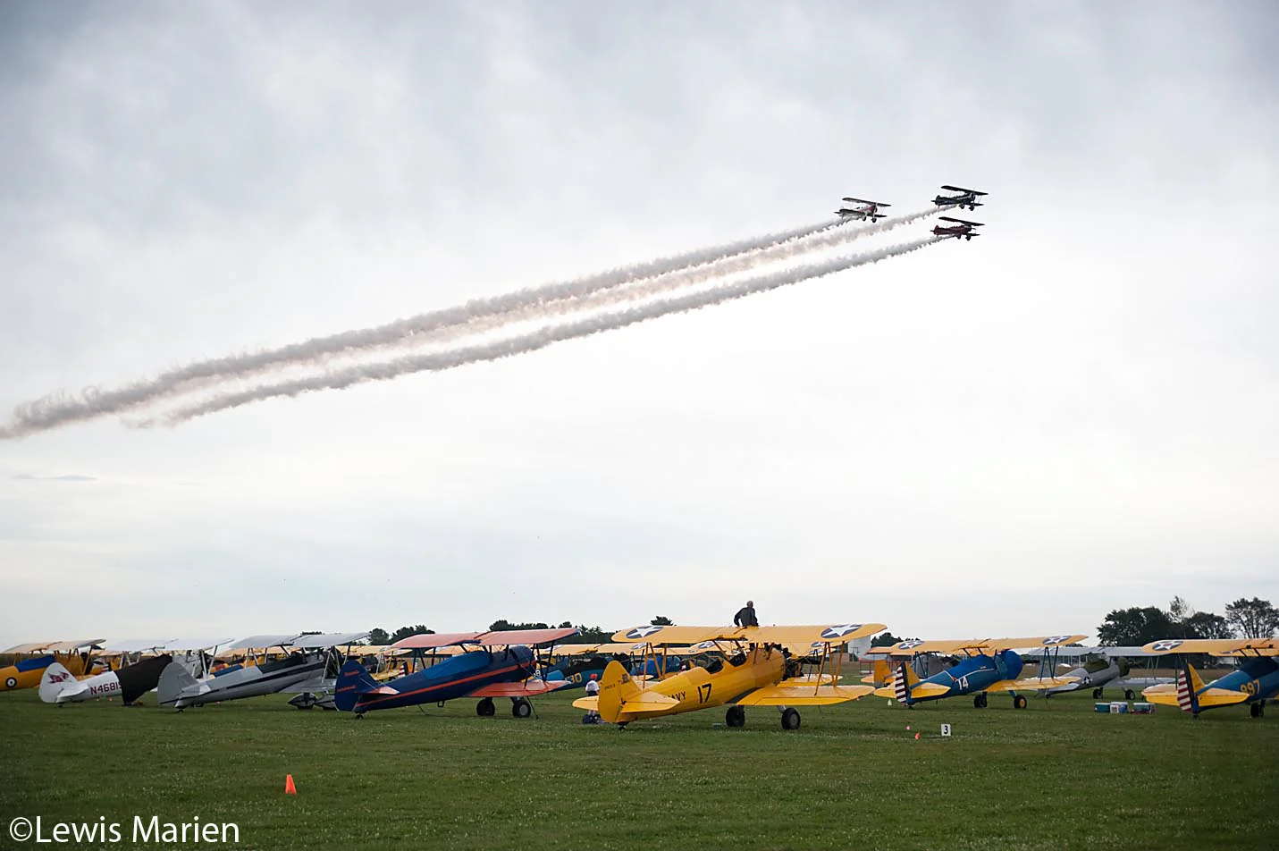 A trio of Stearman biplanes roll over the flight line during Day 2 of the 44th annual National Stearman Fly-In on Sept. 8 at Galesburg Municipal Airport.
