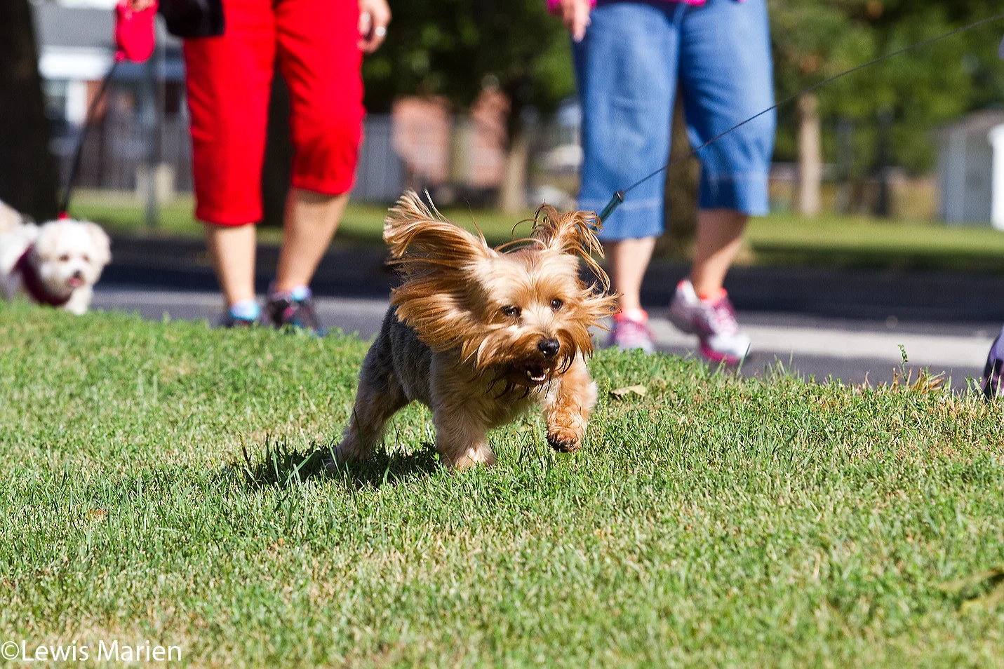 Max, a 7-year-old yorkie, frolics through the grass during the 23rd annual Doggie Jog on Sept. 19 at the Prairieland Animal Welfare Center in Galesburg, Ill.